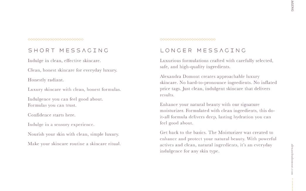 I’ve had the pleasure of developing brand guidelines for a new luxury skincare company founded by a husband and wife duo. This included establishing the brand voice and tone and creating copy samples for social media, packaging, email marketing, and more.